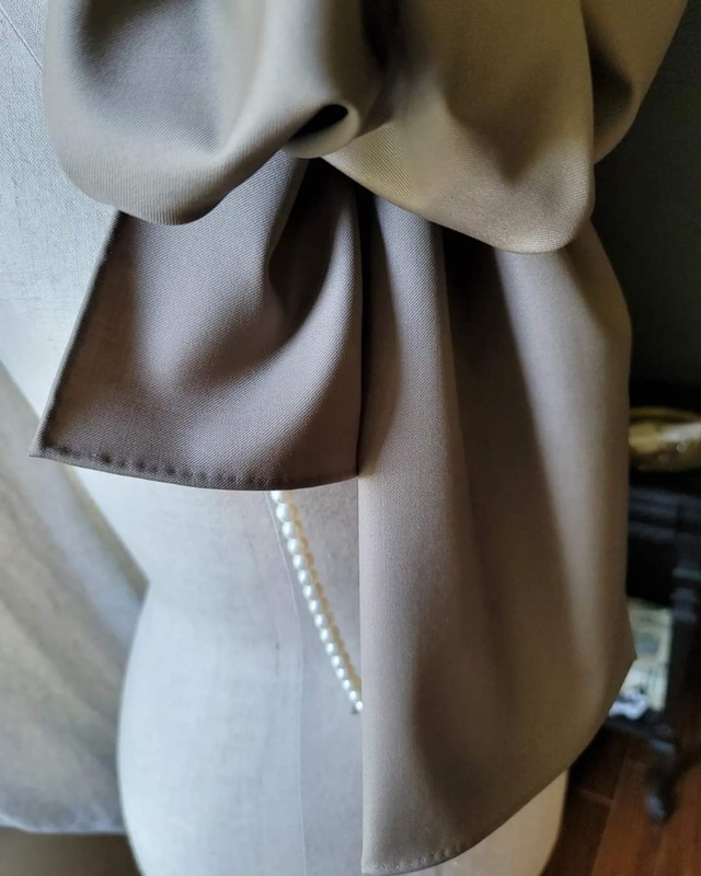 張りのある上質なイタリア製ウール生地を、フランスの一流メゾンのシルクスカーフで見られるような、Hand Rolled Hem (ハンドロールドヘム) 手まつりで仕上げました。